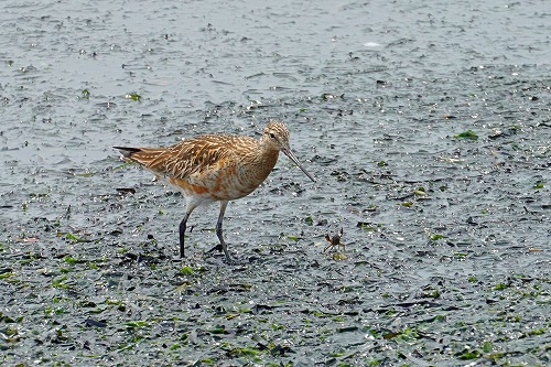 | 干潟に降りて来た。胸から腹がかなり赤い。 夏羽へ移行中。全長 37-41cm |
