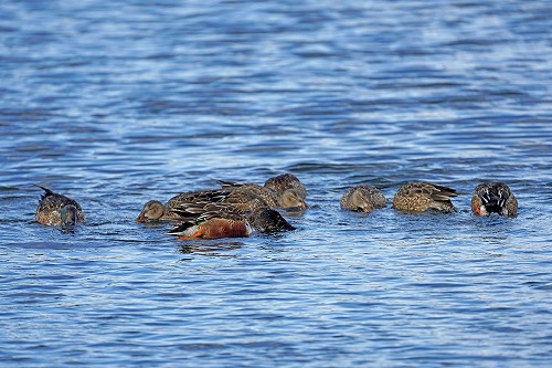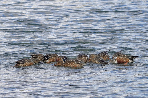 | ヒドリガモの群に混じって1羽だけ。 | 三列風切りが伸びた繁殖羽。全長 46-54cm |