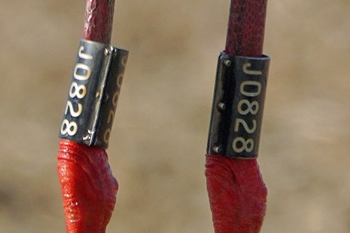 | 脚は足指の先まで濃赤色。 | 足環 両足とも黒色J0828 全長 110-115cm |