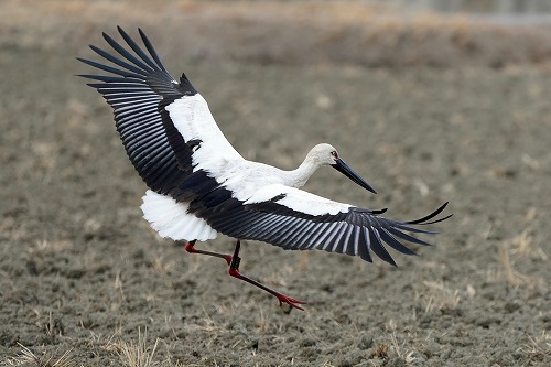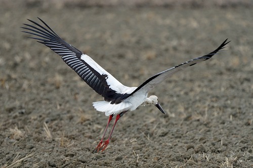 | 田圃及びその水路にいた。警戒心は薄い。 | 見事な羽。 |
