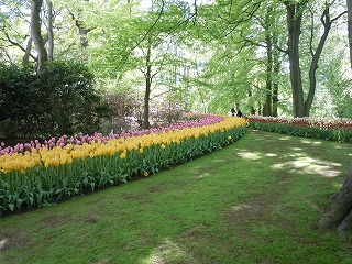 | キュウケンホフ 森の下に色々なチュウリップ |