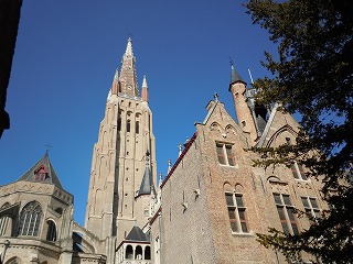 夕食のデザートには早速ベルギーワッフル | 翌朝は快晴の下、聖母教会へ |
