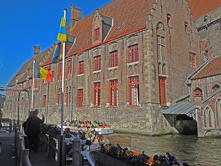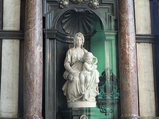 | 白大理石のミケランジェロ作「聖母子像」 | ブルージュの運河クルーズ乗り場 | 古い木造家屋 |