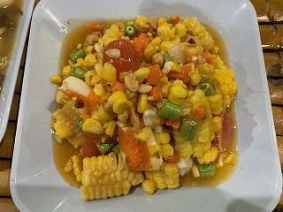4日目の夕食 コーンと野菜料理。 |