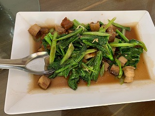6日目の昼食 空心菜と豚肉料理。 |