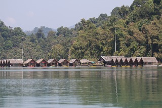 | KHAO SOK National Park 湖の最奥部には幾つかのリゾートがある。 |