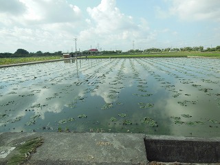 官田へ 高速沿いにハス田、田圃が見える。 田圃では稲が刈り取られている。二期作の 様だ。 |