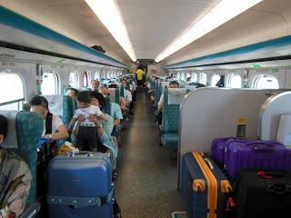 | 台湾高鐵(新幹線) 日本の新幹線技術が輸出されたので、車内 は新幹線とよく似ている。 普通車は2席・3席。 |