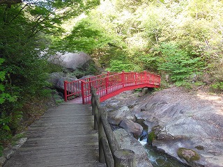 | 国定公園鬼岩公園 見返り橋から渓谷の遊歩道が始まる。 |