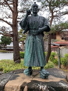 | 山岡鉄舟 高山陣屋前にこの銅像があるのを 知った。 山岡は両親が高山陣屋に勤務したので 幼少期から青年期を高山で過ごした。 |