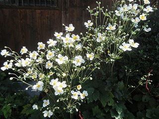 萩町合掌造り集落 集落のあちこちでシュウメイギク白花が 咲いている。 |